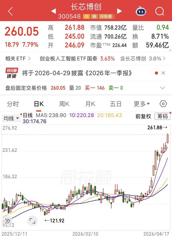 进入2026年,在AI算力需求持续爆发、技术迭代与供给瓶颈共同驱动下,光通信板块成为市场最亮眼的主线之一。长芯博创股价今年以来上涨超过80%,在4月更是接连突破新高,4月17日收涨7.79%,盘中一度创下261.88元/股历史新高。